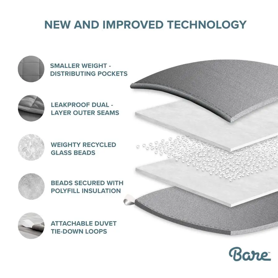UNIQUE DESIGN The structure of Weighted Blanket is designed with reinforced stitching to prevent beads from shifting or leaking while you are sleeping. Smaller pockets allow for even distribution of weight over the surface of the body. Our blanket features corner loops that can be used to secure a Weighted Blanket Duvet Cover with corner ties. OEKOTEX Standard 100 Certified free from harmful chemicals and dyes. Label ID BJ025 166960